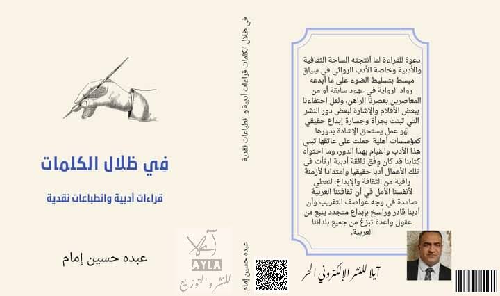 في ظلال الكلمات قراءات أدبية وانطب اعات نقدية دعوة نستعيد معا من خلالها شغف القراءة وقيمة الثقافة كمعيار أساسي لبناء المجتمعات والارتقاء بالأمم، في سياق مبسط بتسليط الضوء على ما أبدعه رواد الرواية في عهود سابقة أو من المعاصرين بعصرنا الراهن، ولعل احتفاءنا ببعض الأقلام والإشارة لبعض دور النشر التي تبنت بجرأة وجسارة إبداع حقيقي ل ُهو عمل يستحق الإشادة بدورها كمؤسسات أهلية حملت على عاتقها تبني هذا الأدب والقيام بهذا الدور، وما احتواه كتابنا قد كان و فق ذائقة أدبية ارتأت في تلك الأعمال أدبا حقيقيا وامتدادا لأزمنة راقية من الثقافة والإبداع؛ لنعطي لأنفسنا الأمل في أن ثقافتنا العربية صامدة في وجه عواصف التغريب وأن أدبنا قادر وراسخ بإبداع متجدد ينبع من عقول واعدة تبزغ من جميع بلداننا العربية. وآخر ما نخطه بكتابنا أن نسأل الله أن يجعله العلم الذي ينتفع به، إكراما وإجلالا للغتنا العربية التي نضع مسئولية حفظها أمانة في أعناقنا